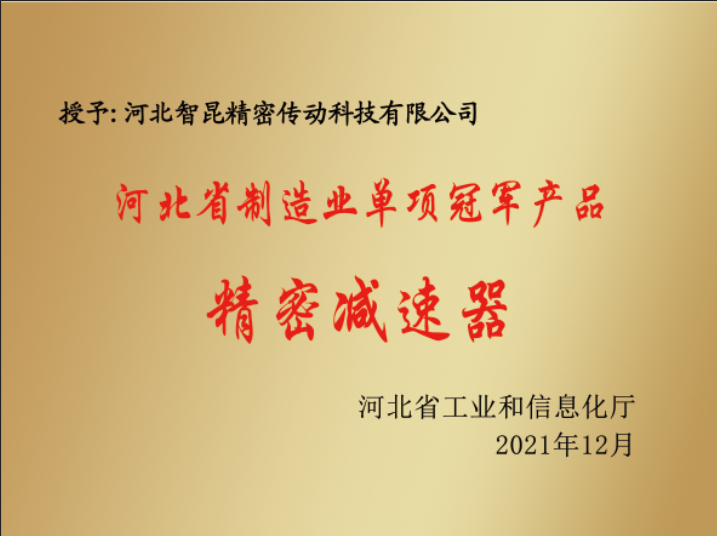 智昆科技-“精密減速器”入選第三批河北省制造業單項冠軍產品